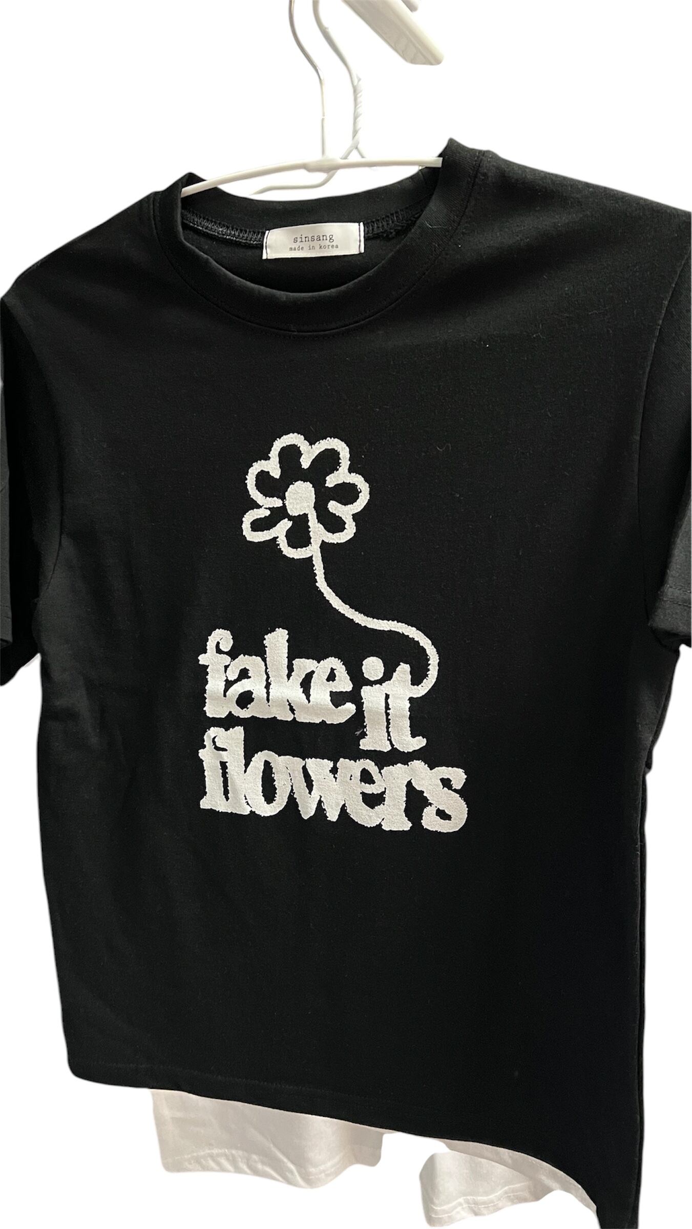 フェイクフラワーTシャツ ブラック