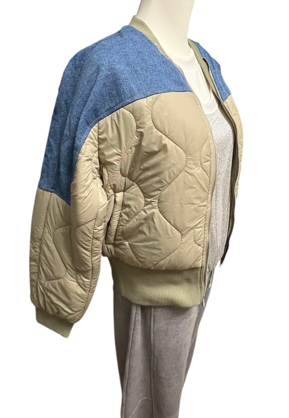ブルーミックスキルティングジャンパーカーキ